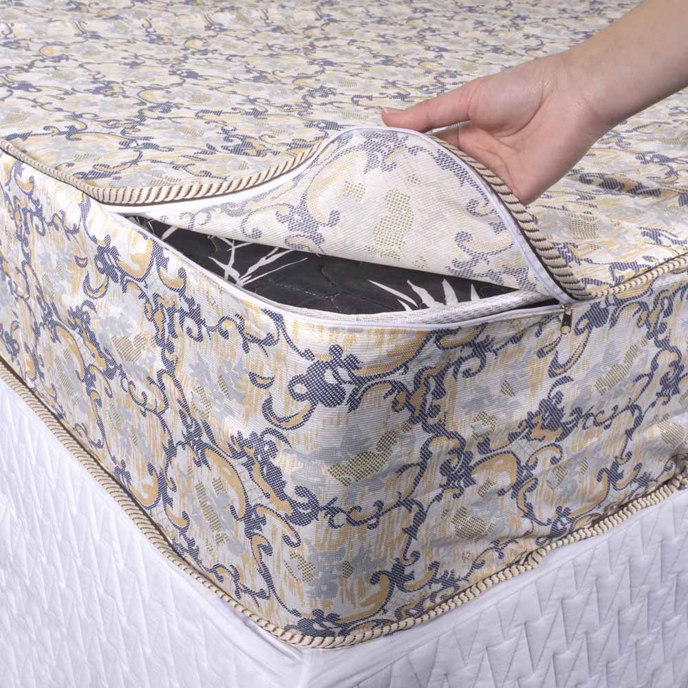 Reveste todo o Colchão, seu Fechamento é feito através de Zíper.