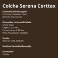 A Colcha Serena da Corttex vai trazer para o seu quarto sofisticação, requinte e aconchego. Ela combina um design elegante e uma textura extremamente macia. Confeccionada em tecido 300 fios 100% poliéster de alta qualidade, o delicado acabamento em bordado inglês está presente tanto na colcha quanto nos porta-travesseiros, o que confere um charme clássico e romântico.
