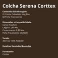 A Colcha Serena da Corttex vai trazer para o seu quarto sofisticação, requinte e aconchego. Ela combina um design elegante e uma textura extremamente macia. Confeccionada em tecido 300 fios 100% poliéster de alta qualidade, o delicado acabamento em bordado inglês está presente tanto na colcha quanto nos porta-travesseiros, o que confere um charme clássico e romântico.