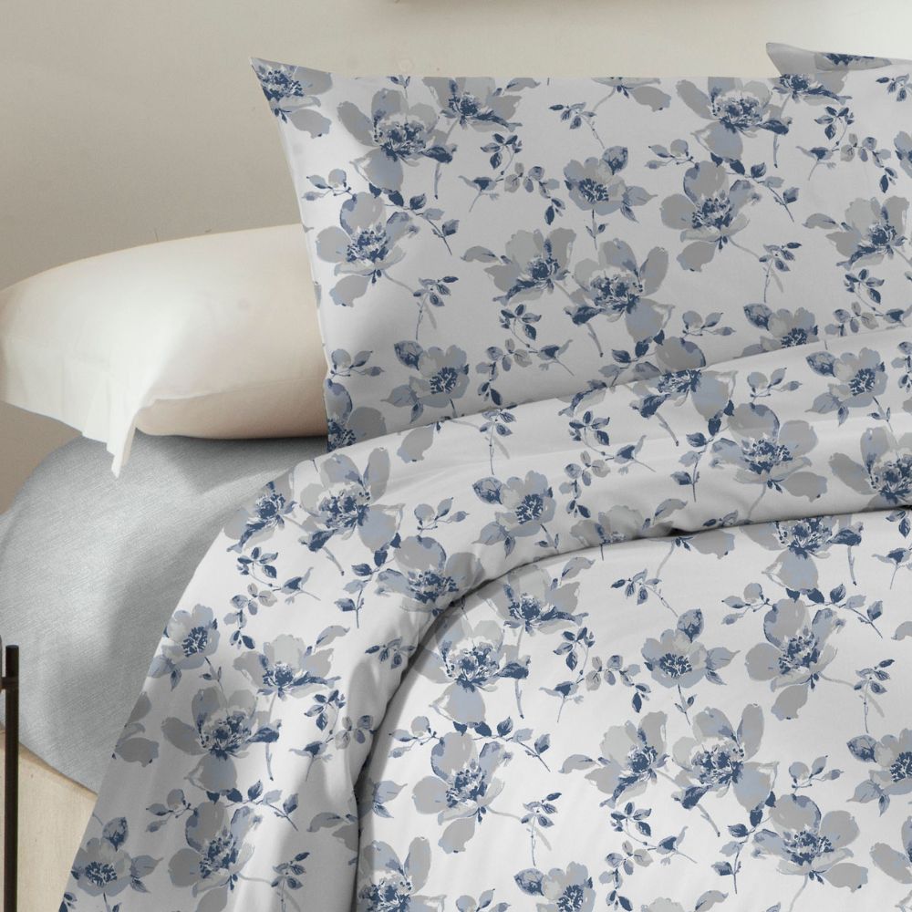 Jogo de Cama Casal Floral Azul Corttex Microtec 200 Fios 4 Peças