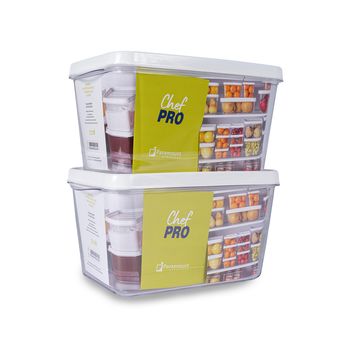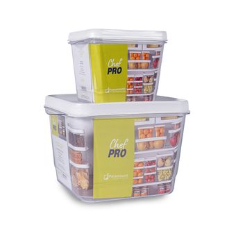 Potes Multiuso Chef Pro Empilháveis, ótimos para organizar e armazenar. Potes transparentes com tampa branca, ótimo fechamento. Livre de BPA.